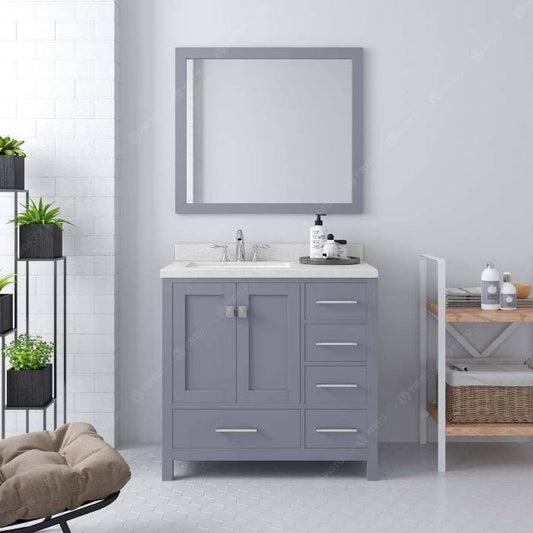 Caroline Avenue Contemporary Gray 24" Single Round Sink Vanity Set w/ Polished Chrome Faucet