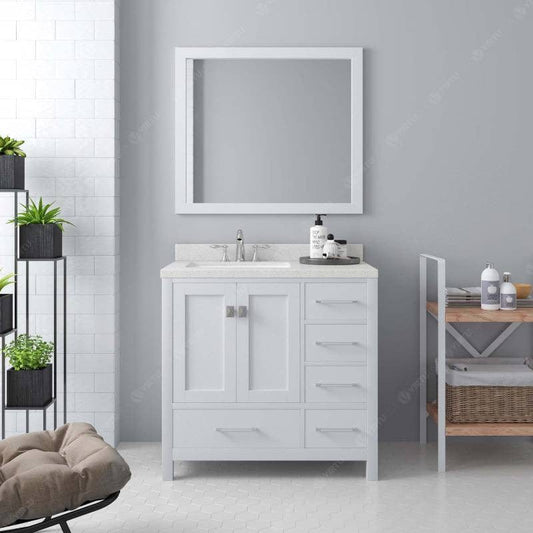 Virtu USA Caroline Avenue Contemporary White 24" Single Square Sink Vanity with Dazzle White Top