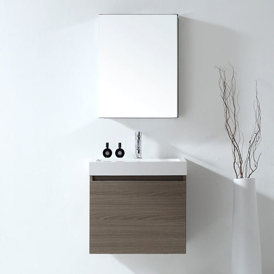 Virtu USA Zuri 24 Single Square Sink Grey Oak Top Vanity in Grey Oak w/ Polished Chrome Faucet & Mirror