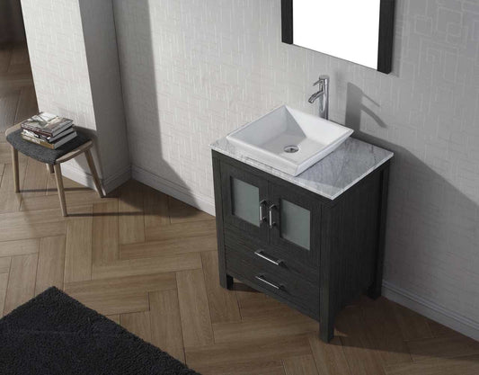 Virtu USA Dior 24 Single Bathroom Vanity Set in Zebra Grey w/ Italian Carrara White Marble Counter-Top | Vessel Sink