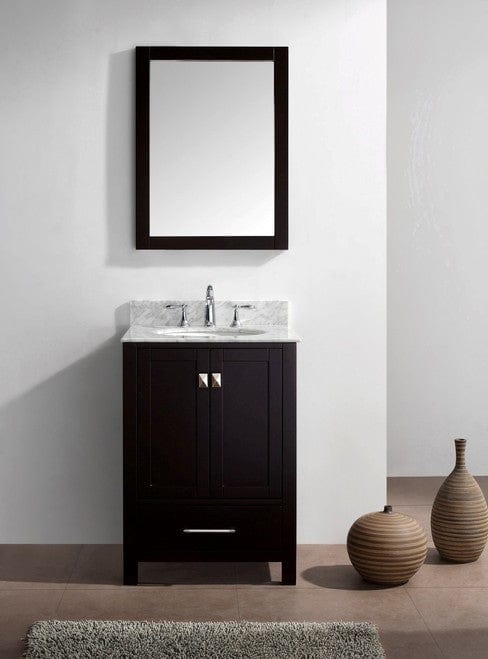Virtu USA Caroline Avenue 24 Single Bathroom Vanity Set in Espresso w/ Italian Carrara Espresso Marble Counter-Top |Ê Round Basin