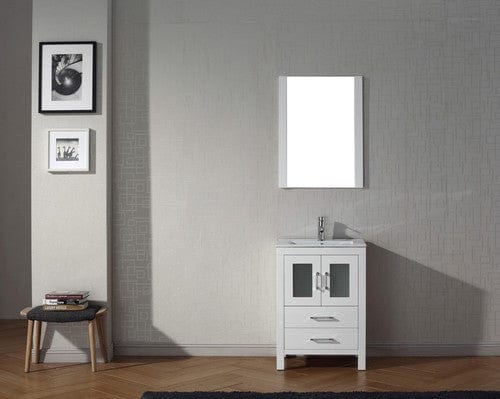 Virtu USA Dior 24 Single Bathroom Vanity Set in White w/ Ceramic Counter-Top | Integrated Sink