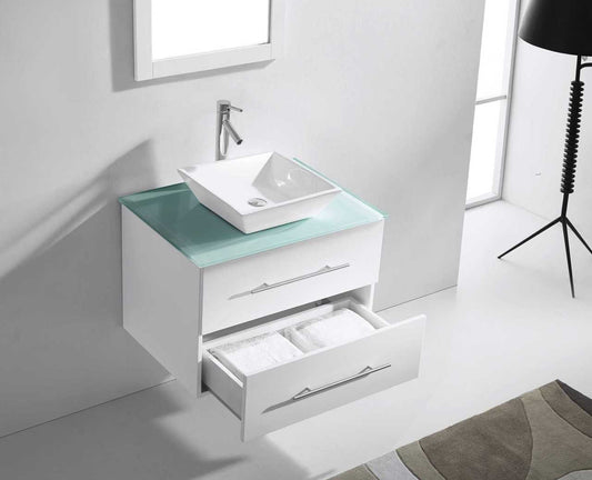 Virtu USA Marsala 29 Single Bathroom Vanity Set in White w/ Tempered Glass Counter-Top | Square Basin