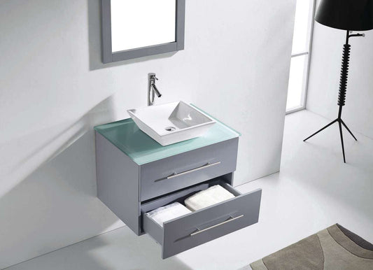 Virtu USA Marsala 29 Single Bathroom Vanity Set in Grey w/ Tempered Glass Counter-Top | Square Basin