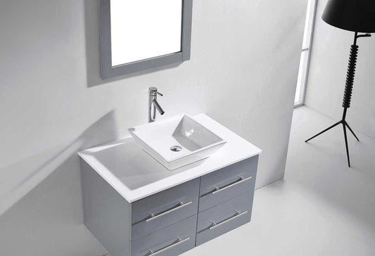 Virtu USA Marsala 35 Single Bathroom Vanity Set in Grey w/ Tempered Glass Counter-Top | Square Basin
