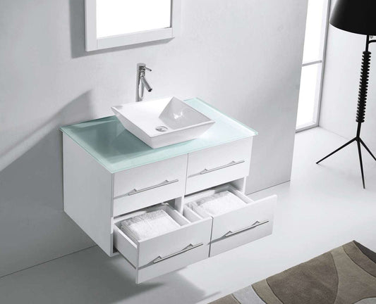 Virtu USA Marsala 35 Single Bathroom Vanity Set in White w/ Tempered Glass Counter-Top | Square Basin