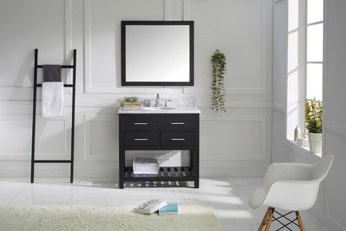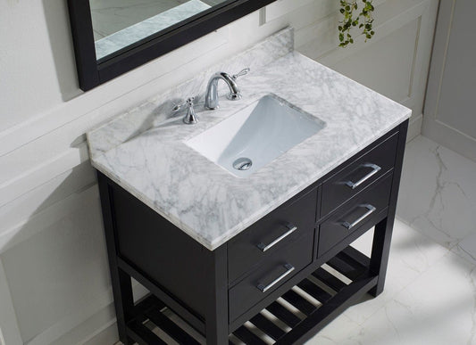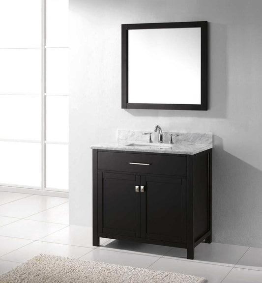 Virtu USA Caroline Estate 36 Single Bathroom Vanity Set in Espresso w/ Italian Carrara White Marble Counter-Top | Square Basin