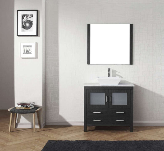 Virtu USA Dior 36 Single Bathroom Vanity Set in Zebra Grey w/ Italian Carrara White Marble Counter-Top | Vessel Sink