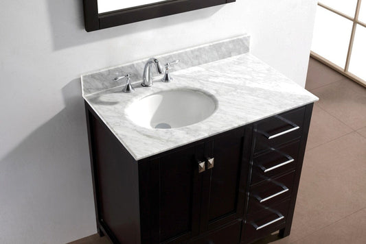 Virtu USA Caroline Avenue 36 Single Bathroom Vanity Set in Espresso w/ Italian Carrara White Marble Counter-Top |Ê Round Basin