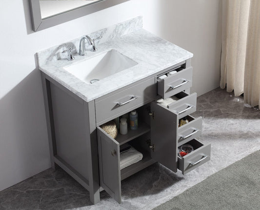 Virtu USA Caroline Parkway 36 Single Bathroom Vanity in Cashmere Grey - Rightside basin w/ Marble Top & Square Sink