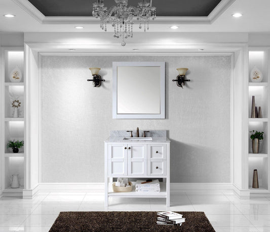 Virtu USA Winterfell 36 Single Bathroom Vanity Set in White w/ Italian Carrara White Marble Counter-Top | Square Basin