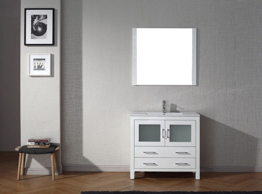 Virtu USA Dior 36 Single Bathroom Vanity Set in White w/ Ceramic Counter-Top | Integrated Sink