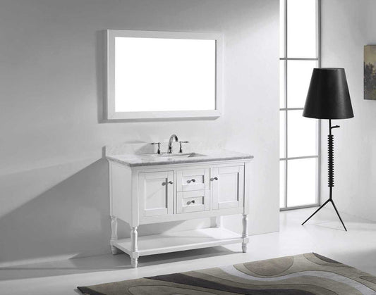 Virtu USA Julianna 48 Single Bathroom Vanity Set in White w/ Italian Carrara White Marble Counter-Top | Square Basin