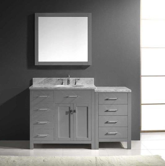 Virtu USA Caroline Parkway 57 Single Bathroom Vanity Set in Grey w/ Italian Carrara White Marble Counter-Top | Round Basin - Leftside Drawer