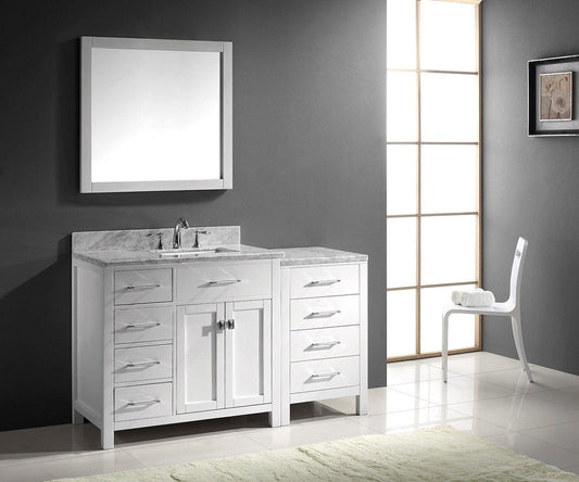 Virtu USA Caroline Parkway 57 Single Bathroom Vanity Set in White w/ Italian Carrara White Marble Counter-Top | Square Basin - Leftside Drawer