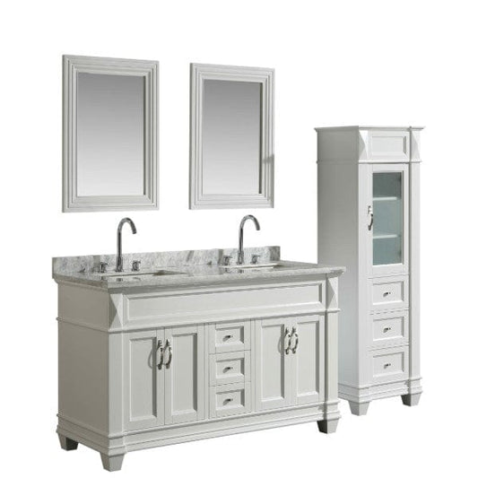 Hudson 60″ White Double Sink Vanity w/ Carrara Marble Top & 65" Linen Cabinet