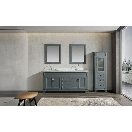 Hudson 60″ Gray Single Sink Vanity w/ Carrara Marble Top and 65" Linen Cabinet
