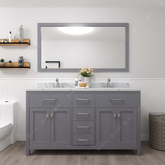 Caroline Avenue Gray 60" Double Square Sink Vanity with Calacatta Quartz Top | MD-2060-CCSQ-GR