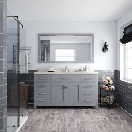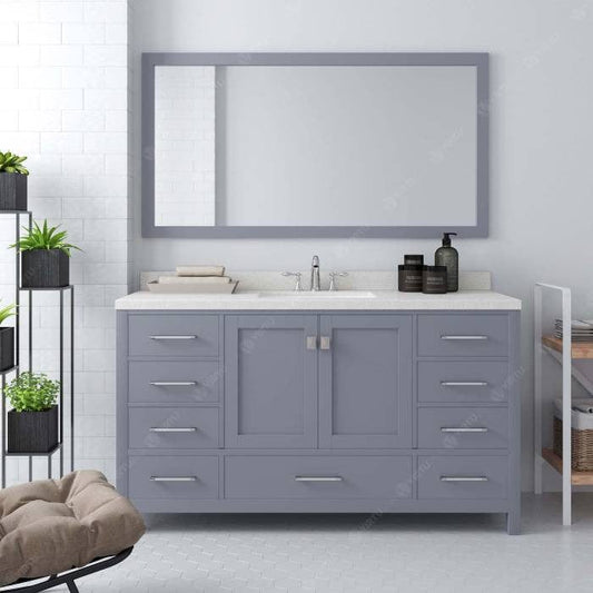 Caroline Contemporary Gray 60" Single Square Sink Vanity Set with White Top