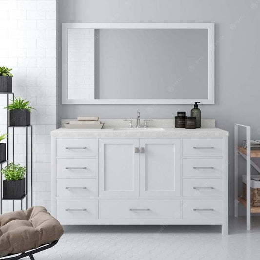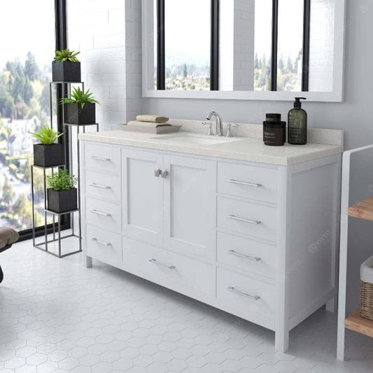 Caroline Contemporary White 60" Single Square Sink Vanity Set with White Top