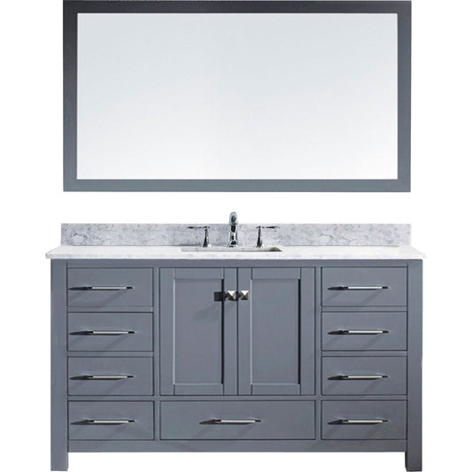 Virtu USA Caroline 60 Single Bathroom Vanity Set in Grey w/ Italian Carrara White Marble Counter-Top | Round Basin
