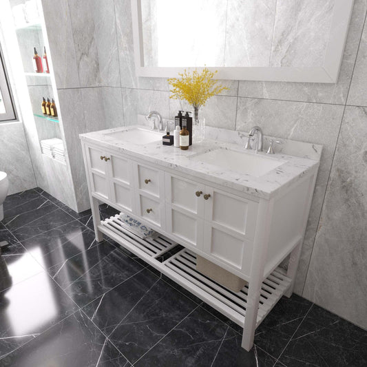 Winterfell 60" Bath Vanity in White with Marble Quartz Top