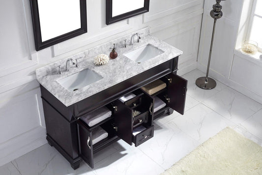 Virtu USA Julianna 60 Double Bathroom Vanity Set in Espresso w/ Italian Carrara White Marble Counter-Top | Square Basin