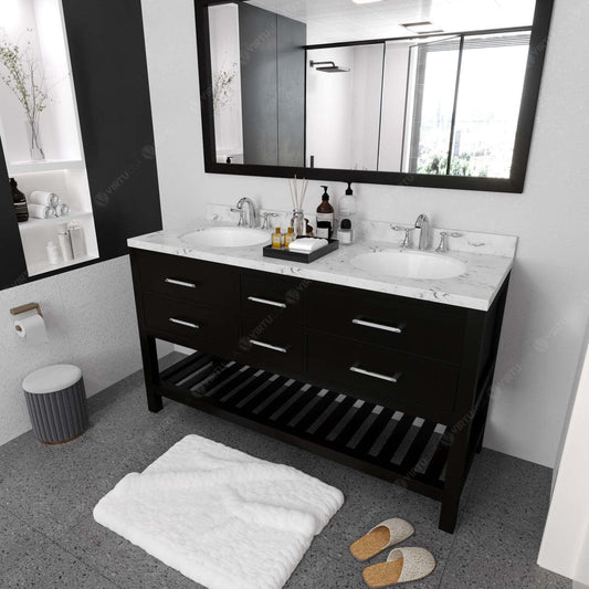 Caroline 60" Bath Vanity in Espresso with Cultured Marble Quartz Top and Sinks