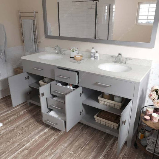 Caroline Avenue Contemporary Cashmere Grey 72" Double Oval Sink Vanity Set with Polished Chrome Faucet