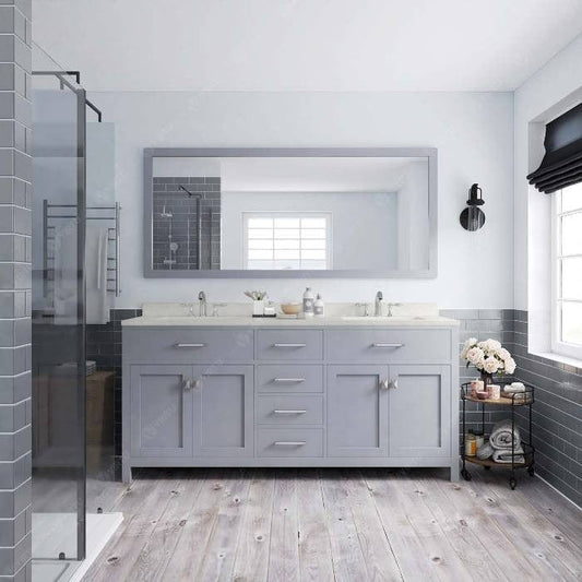 Caroline Avenue Contemporary Cashmere Grey 72" Double Square Sink Vanity Set with Brushed Nickel Faucet