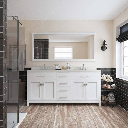 Caroline Contemporary White 72" Double Square Sink Vanity with White Top