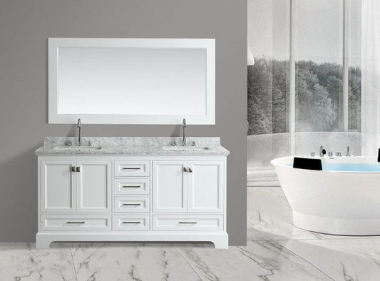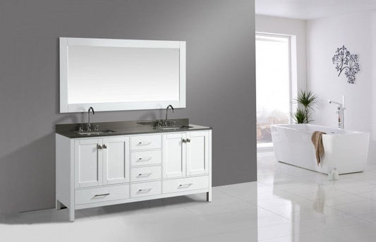 Design Element London Hyde 72" Vanity in White w/ Quartz Top in Gray and Mirror | DEC082B-W-GT