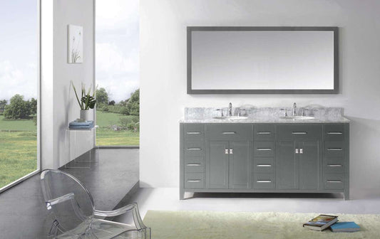 Virtu USA Caroline Parkway 72 Double Bathroom Vanity Set in Grey w/ Italian Carrara White Marble Counter-Top | Round Basin