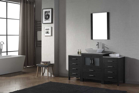 Virtu USA Dior 64 Single Bathroom Vanity Set in Zebra Grey w/ Italian Carrara White Marble Counter-Top | Vessel Sink