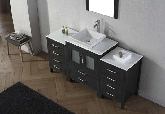 Virtu USA Dior 64 Single Bathroom Vanity Set in Zebra Grey w/ Pure White Stone Counter-Top | Vessel Sink