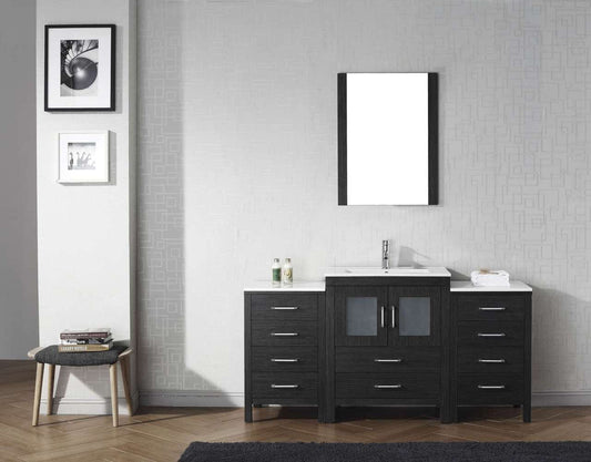 Virtu USA Dior 64 Single Bathroom Vanity Set in Zebra Grey w/ Ceramic Counter-Top | Integrated Sink