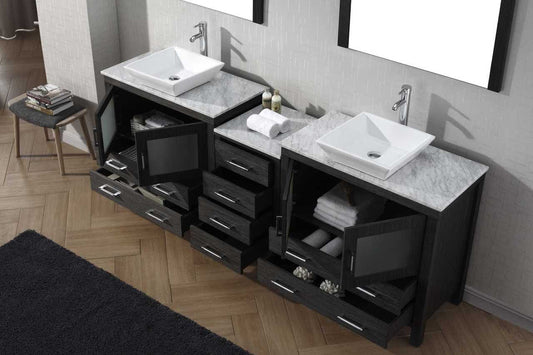 Virtu USA Dior 78 Double Bathroom Vanity Set in Zebra Grey w/ Italian Carrara White Marble Counter-Top | Vessel Sink