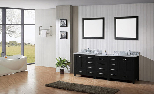 Virtu USA Caroline Premium 90 Double Bathroom Vanity Set in Zebra Grey w/ Italian Carrara White Marble Counter-Top | Round Basin