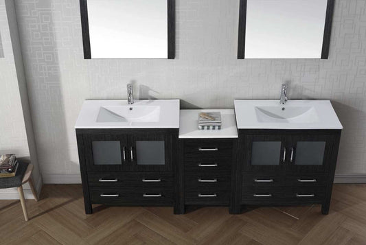 Virtu USA Dior 82 Double Bathroom Vanity Set in Zebra Grey w/ Ceramic Counter-Top | Integrated Sink