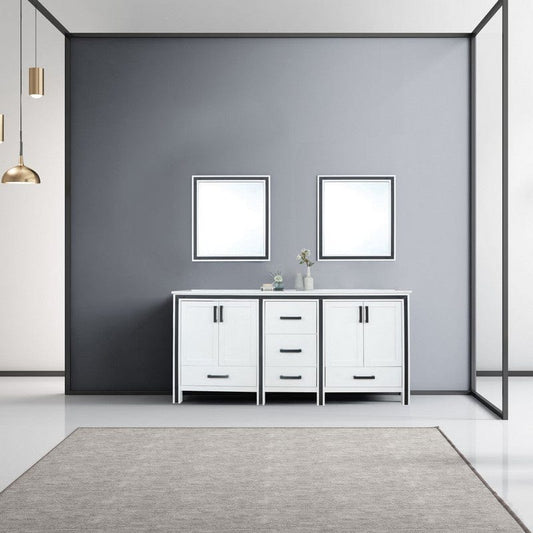 Ziva Transitional White 72" Double Vanity, Cultured Marble Top, White Square Sink and 30" Mirrors | LZV352272SAJSM30