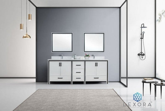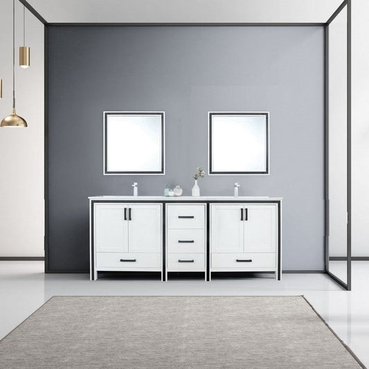 Ziva Transitional White 80" Double Vanity, Cultured Marble Top, White Square Sink and 30" Mirrors | LZV352280SAJSM30