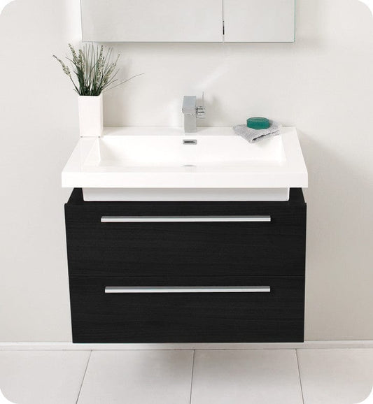 Adler Transitional 30" Black Vanity, Steel Grey Cultured Marble Top | VKITADL30BKSGR