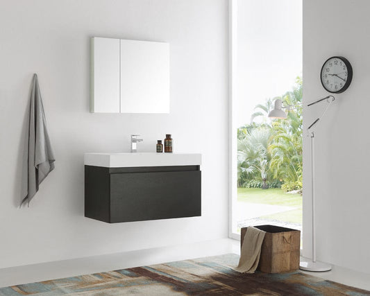 Cade Transitional 36" Black Left Offset Sink Vanity, Steel Grey Cultured Marble Top | VKITCAD36BKSGR