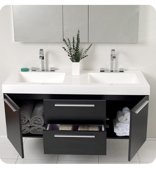 Adler Transitional 60" Black Double Sink Vanity, Black Granite Top | VKITADL60BKBGR