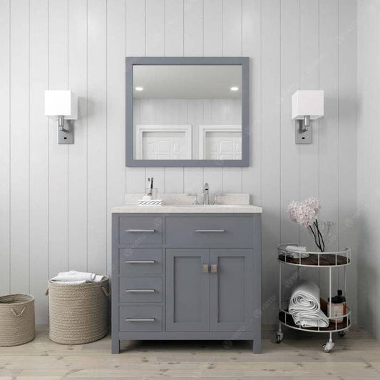 Caroline Parkway Contemporary Grey 36" Single Square Sink Vanity Set with White Top, Right Offset
