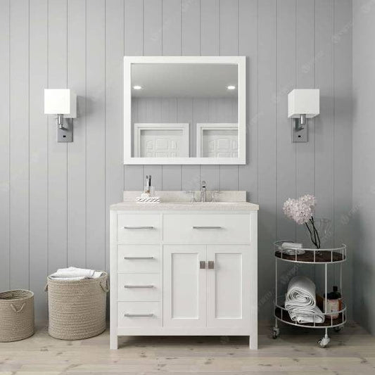 Caroline Parkway Contemporary White 36" Single Square Sink Vanity Set with White Top, Right Offset