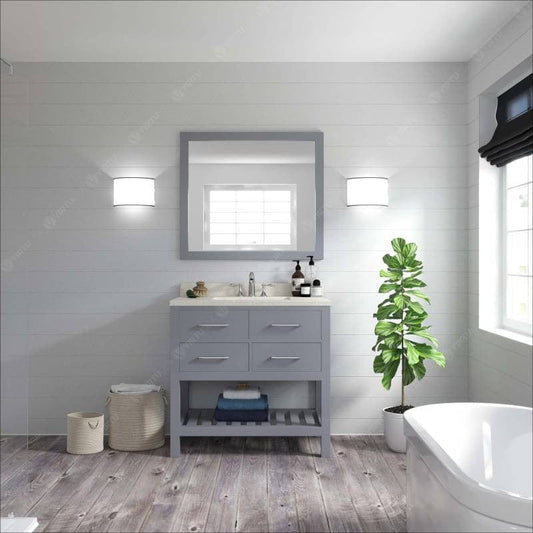 Virtu USA Caroline Estate Contemporary Gray 36" Single Round Sink Vanity with Dazzle White Top