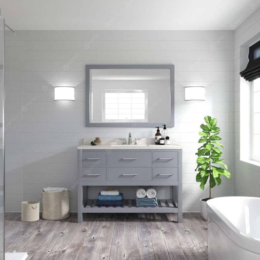 Virtu USA Caroline Estate Contemporary Gray 48" Single Square Sink Vanity with Dazzle White Top
