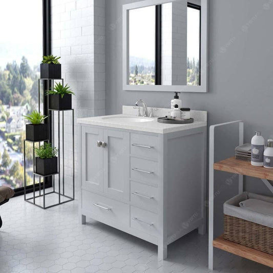 Virtu USA Caroline Estate Contemporary Gray 36" Single Round Sink Vanity Set with Dazzle White Top