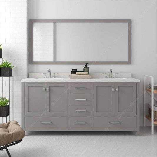 Virtu USA Caroline Avenue Contemporary Gray 72" Double Square Sink Vanity with Dazzle White Top